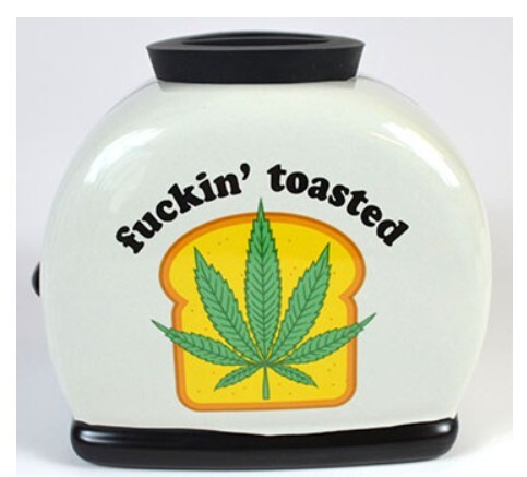 A toaster novelty jar that has a rubber seal around the bread slots. This humorous jar makes a great gift that functions as a storage container.