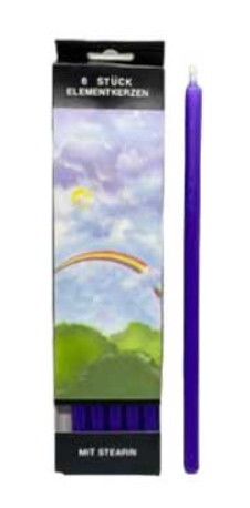 Set of 6 purple extra long chime/taper candles. These elegant element candles are sure to make a statement along with extra burn life. 10" and fits 1/2" holders.