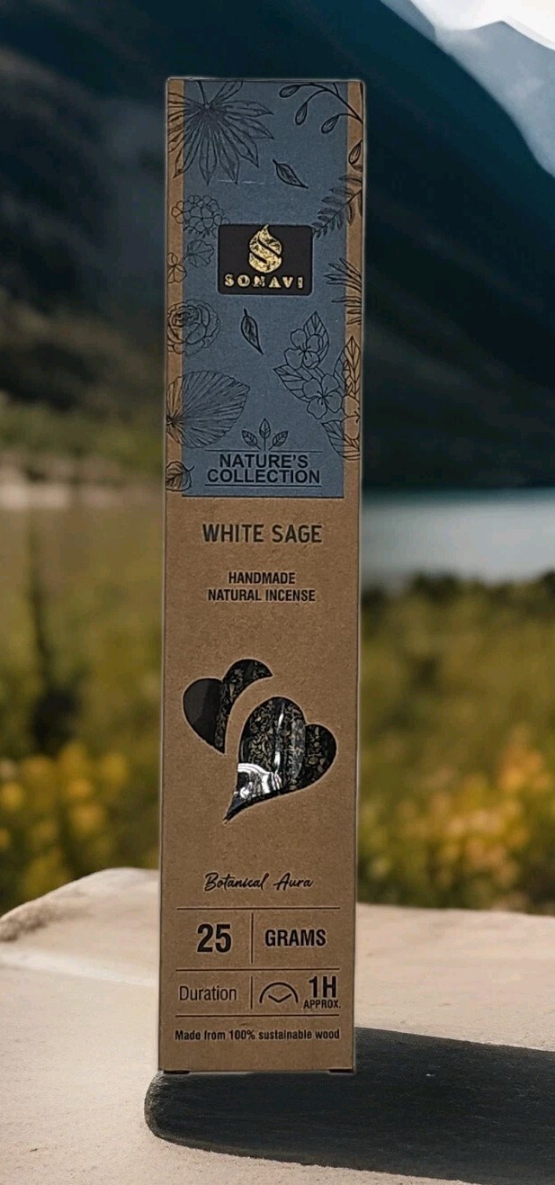 1 Box of Sonavi Premium Handcrafted White Sage Incense Sticks. 25gm per box. Excluding Tax: $0.30 $3.95 Add To Cart Buy Now Call Us WhatsApp Description Sonavi presents its handmade natural incense featuring a harmonious scent of White Sage from the Nature's collection line. These eco-friendly, non-toxic, and cruelty-free incense sticks are crafted with care, ensuring a pure and aromatic experience. 25-gram pack with each stick designed to burn for approximately one hour, allowing for extended enjoyment of their soothing fragrances. Proudly made in India, this incense is perfect for enhancing relaxation and creating a serene atmosphere in any space. Delivery Orders are packed and shipped same day if the order is placed before 3:00p.m. Central Standard Time. All orders are shipped via standard delivery. If you require expedited delivery, please contact us.