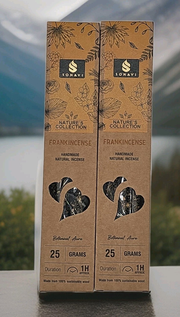 2 Boxes of Sonavi Premium Handcrafted Frankincense Incense Sticks. 25gm per box. 2 PACKS OF SONAVI FRANKINCENSE HANDMADE NATURAL INCENSE. 25GM PER PACK Excluding Tax: $0.52 $6.95 Add To Cart Buy Now Call Us WhatsApp Description The Sonavi Frankincense Handmade Natural Incense comes in a pack of 2, with each pack containing 25gm of incense. This high-quality incense is infused with the soothing scent of Frankincense, perfect for creating a calming and relaxing atmosphere in your home. Whether you're looking to enhance your meditation space or add a subtle fragrance to your living room, this natural incense is a great choice for adults looking to promote a sense of tranquility and peace in their space. Delivery Orders are packed and shipped same day if the order is placed before 3:00p.m. Central Standard Time. All orders are shipped via standard delivery. If you require expedited delivery, please contact us.