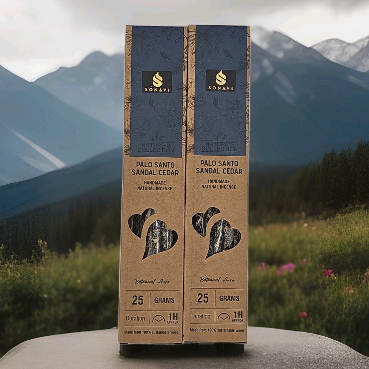 2 Boxes of Sonavi Premium Handcrafted Palo Santo, Sandal, Cedar Incense Sticks. 25gm per box.
