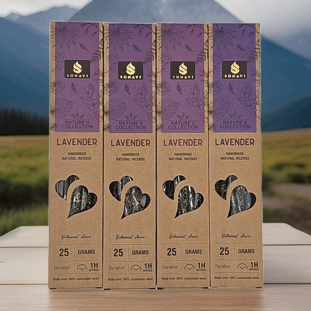 4 Boxes of Sonavi Premium Handcrafted Lavender Incense Sticks. 25gm per box.