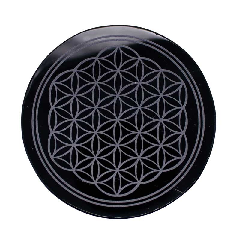 4" Obsidian, Black Flower of Life altar tile