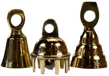 Coming in various styles, these small bells ring with a high, clear tone. Sizes vary slightly. Brass. 3/4", style as picked