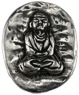 This pewter pocket stone bears the image of the Buddha. This is intended to remind you to seek inner peace and the middle way in all things. Pewter. 3/4". Made in USA