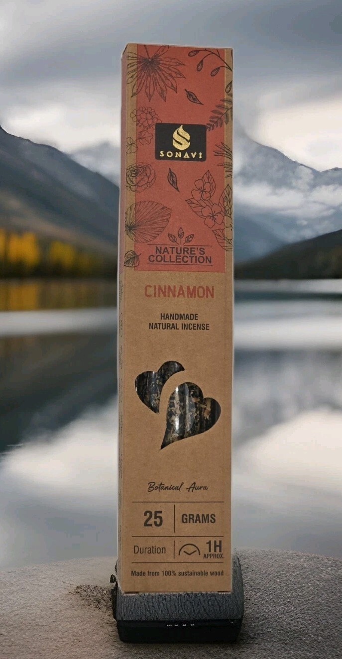 1 Box of Sonavi Premium Handcrafted Cinnamon Incense Sticks. 25gm per box.