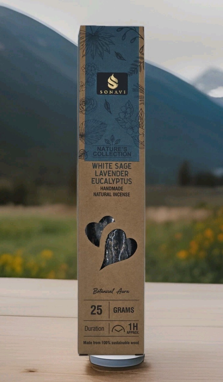 1 Box of Sonavi Premium Handcrafted White Sage, Lavender, Eucalyptus Incense Sticks. 25gm per box. 1 BOX OF SONAVI WHITE SAGE, LAVENDER, EUCALYPTUS HANDCRAFTED INCENSE Excluding Tax: $0.30 $3.95 Add To Cart Buy Now Call Us WhatsApp Description Experience the serene ambiance that Sonavi Handmade White Sage, Lavender, Eucalyptus Incense brings to your space. Each box contains 25 grams of premium incense, carefully crafted to infuse your environment with a calming and aromatic essence. Perfect for meditation, relaxation, or simply to add a touch of natural fragrance to your home, this incense is a must-have for enthusiasts of fine aromatics. Sonavi White Sage, Lavender, Eucalyptus incense is a testament to the artistry of traditional craftsmanship, ensuring a unique and authentic scent that cannot be found elsewhere. Elevate your rituals or everyday life with this exquisite blend, a harmonious complement to any setting. Indulge in the tranquility that this exceptional incense offers. Delivery Orders are packed and shipped same day if the order is placed before 3:00p.m. Central Standard Time. All orders are shipped via standard delivery. If you require expedited delivery, please contact us.