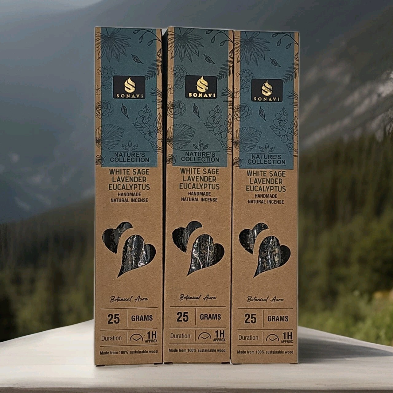 3 Boxes of Sonavi Premium Handcrafted White Sage, Lavender, Eucalyptus Incense Sticks. 25gm per box. 3 PACKS OF SONAVI WHITE SAGE LAVENDER EUCALYPTUS INCENSE. 25GM PER PACK Excluding Tax: $0.75 $9.95 Add To Cart Buy Now Call Us WhatsApp Description The product is a set of three packs of Sonavi White Sage Lavender Eucalyptus incense, each weighing 25gm. This high-quality incense is designed for adults and features a beautiful fragrance blend of white sage, lavender, and eucalyptus. Perfect for creating a calming and peaceful atmosphere, this incense is sure to enhance any space with its soothing scents. Ideal for those looking to add a touch of aromatherapy to their home. Delivery Orders are packed and shipped same day if the order is placed before 3:00p.m. Central Standard Time. All orders are shipped via standard delivery. If you require expedited delivery, please contact us.