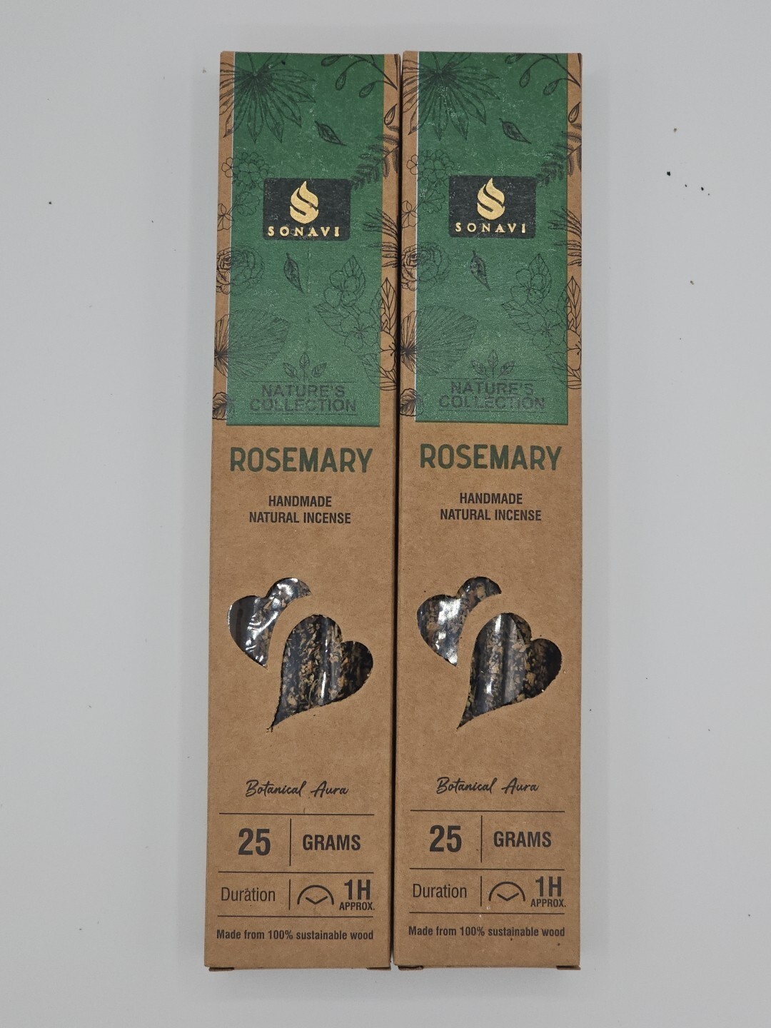 2 Boxes of Sonavi Premium Handcrafted Rosemary Incense Sticks. 25gm per box. 2 PACKS OF SONAVI ROSEMARY NATURAL HANDMADE INCENSE. 25GM PER PACK Excluding Tax: $0.52 $6.95 Add To Cart Buy Now Call Us WhatsApp Description The product is a 2-pack of Sonavi Rosemary handmade incense, with each pack containing 25gm of incense sticks. This natural home fragrance is perfect for adults looking to create a soothing and aromatic ambiance in their living space. The Rosemary scent adds a refreshing and calming element to the room, making it a great addition to any home decor. Perfect for relaxing evenings or as a thoughtful gift for someone who appreciates natural and handmade products. Delivery Orders are packed and shipped same day if the order is placed before 3:00p.m. Central Standard Time. All orders are shipped via standard delivery. If you require expedited delivery, please contact us.