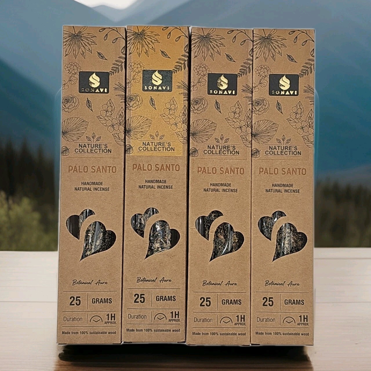 4 Boxes of Sonavi Premium Handcrafted Palo Santo Incense Sticks. 25gm per box. 4 BOXES OF SONAVI PALO SANTO HANDMADE INCENSE, 25 GRAMS PER BOX Excluding Tax: $0.97 $12.95 Add To Cart Buy Now Call Us WhatsApp Description Experience the serene ambiance that Sonavi Handmade Palo Santo Incense brings to your space. Each box contains 25 grams of premium incense, carefully crafted to infuse your environment with a calming and aromatic essence. Perfect for meditation, relaxation, or simply to add a touch of natural fragrance to your home, this incense is a must-have for enthusiasts of fine aromatics. Sonavi Palo Santo incense is a testament to the artistry of traditional craftsmanship, ensuring a unique and authentic scent that cannot be found elsewhere. Elevate your rituals or everyday life with this exquisite blend, a harmonious complement to any setting. Indulge in the tranquility that this exceptional incense offers. Delivery Orders are packed and shipped same day if the order is placed before 3:00p.m. Central Standard Time. All orders are shipped via standard delivery. If you require expedited delivery, please contact us.