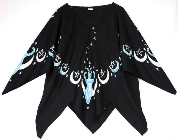 Moon Goddess Top black Excluding Tax: $3.60 $47.95 Add To Cart Buy Now Call Us WhatsApp Description This top has four points on the bottom edge, one in the front, back and each side, and also each sleeve comes to a point. These free-flowing tops fit most sizes up to extra-large. 100% rayon batik Delivery Orders are packed and shipped same day if the order is placed before 3:00p.m. Central Standard Time. All orders are shipped via standard delivery. If you require expedited delivery, please contact us.